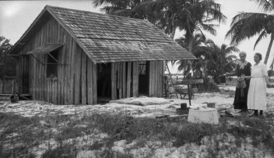 Most homesteaders who lived on the island built primitive palm-thatched log homes (cheekees). They were isolated from the mainland, since the first bridge to the beach was not completed until 1921. Because the island was made up of thick patches of saw palmettos and mangroves, there were no roads, and the only way to get around was by horse or boat.