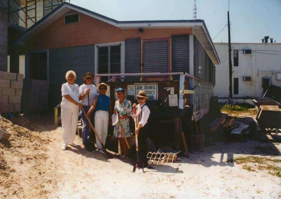 AJ was very close with her twin sister, Connie, who passed away several years ago. These girls, along with Fran Santini, Jean Matthew, and Jo Hughes grew up on the island when it was nothing but a jungle of sea oats and mangroves. They had a wonderful childhood running barefoot on the beach, sailing in the back bay, and fishing in the Gulf. They were instrumental in forming the Estero Island Historic Society in 1991 and getting the Davison’s “We’re Here” cottage donated and moved to Bay Road to become a museum.